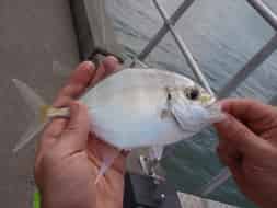 Après quelques lancers, je pique mes premiers poissons : 3 petites carangues, très énergiques !