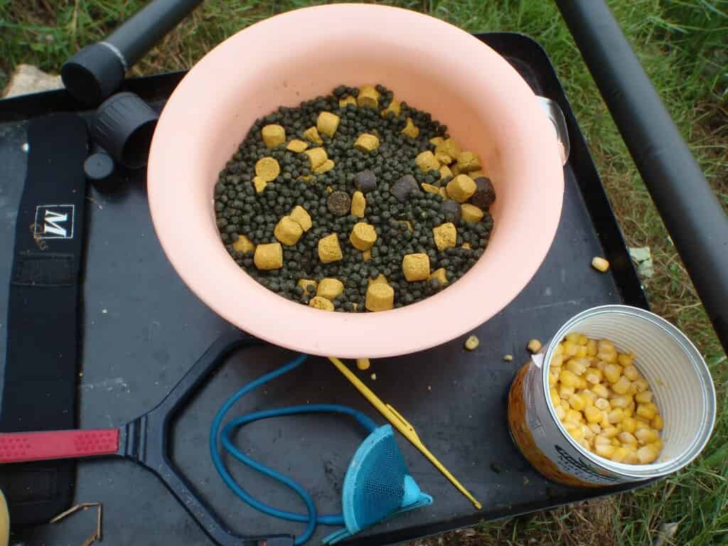 Vu que l'agrainage de maïs avait bien fonctionné, j'ai fait un petit amorçage la veille au soir avec 1 kilos de maïs et 3 kilos de pellets. Ce matin, c'est donc grande canne et agrainage.