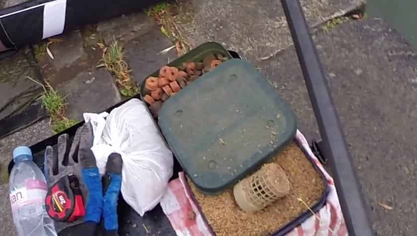 Donc c'est parti, je lance 2 poignées de pellets en arrivant, déballe rapidement le matériel et mouille quelques grammes d'amorce. Pas besoin d'en prendre une tonne pour 30 minutes de pêche.