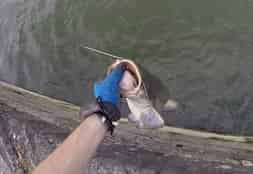 N'ayant pas assez confiance dans la résistance du filet de mon épuisette, je préfère attraper le poisson à la main. Après 20 minutes de combat, un magnifique moustachu de 1m91 rejoint donc la terre ferme !