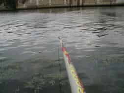 Soit une plombée de 60gr. La touche se voit soit grâce à un repère visuel (flotteur), soit se sent directement dans la canne.